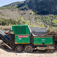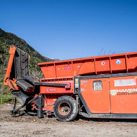 Grazie al Vaglio rotante Doppstadt SM 518 è possibile separare in due frazioni il materiale. La macchina è in grado di vagliare sostanze come residui agro-forestali, rifiuti solidi urbani ed industriali, compost, inerti, sabbia e terra.